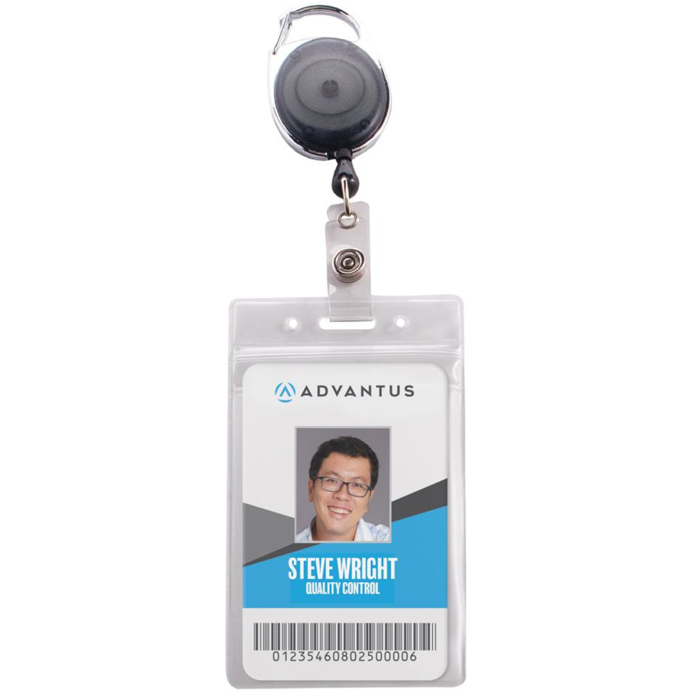 The ideal choice for ID cards and name badges, the Vertical Resealable Badge Holder is made of durable, long-lasting vinyl. It is sized to hold 2-3/8\" wide x 3-3/4\" high inserts. These vertical badge holders have a resealable pouch to protect and secure your ID and are pre-punched for chain or clip use (chains/clips sold separately). They are an excellent choice for small or large office use. Resealable badge holders offer a vertical orientation.