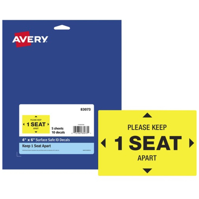 Keep people at a safe distance using these round Social Distancing Floor Decals labeled "Please Wait Here." Preprinted with an eye-catching yellow and black pattern and a semi-glossy finish, these large floor decals have a 10-1/2" diameter and immediately stand out. Built to withstand the constant wear-and-tear of everyday foot traffic, these anti-slip vinyl floor decals are scuff-resistant, water-resistant and UV-coated for additional durability. Removable floor decals stick and stay to multiple indoor surfaces, including carpeted floors, but also peel away cleanly. Removable adhesive also makes it easy to reposition the floor decals so that you can carefully adjust the placement of the vinyl floor decals to make sure that the spacing is just right. Preprinted, social distancing floor decals are perfect for every type of location or business including retail stores, restaurants, hair salons, banks, airports and more. Pack includes five decals.