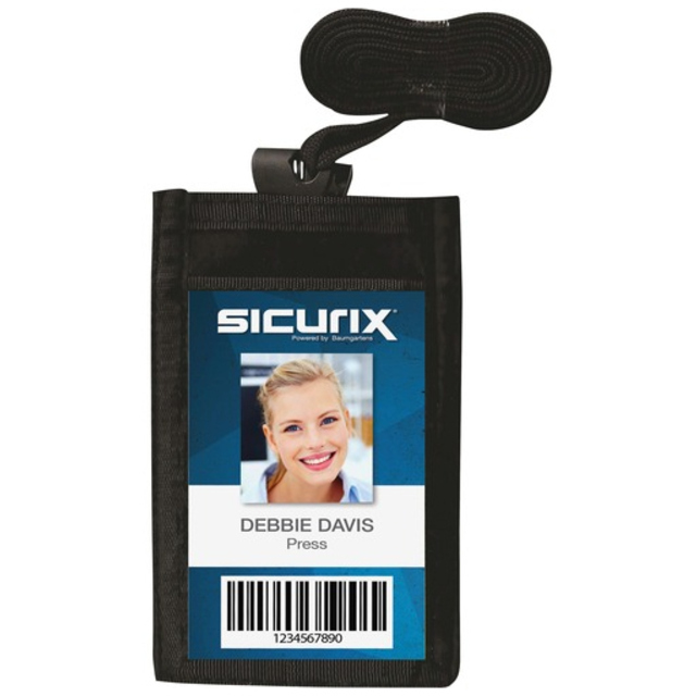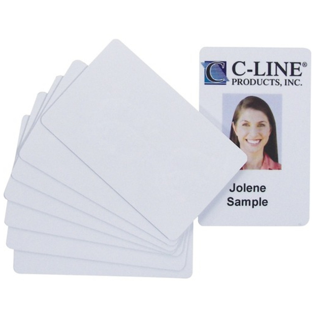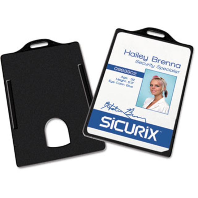 Protects your ID card or badge while keeping it visible. An ID card (sold separately) slides in and stays in place, but is also easy to remove when you need it with a thumb cutout and cutout edge on the back. This rigid plastic card holder can be attached to lanyards, clips or card reels. Accommodates cards up to .30mm thick. Name Badge Label Length: 3 11/16"; Name Badge Label Width: 2 5/16"; Orientation: Horizontal; Name Badge Holder Material(s): Plastic.