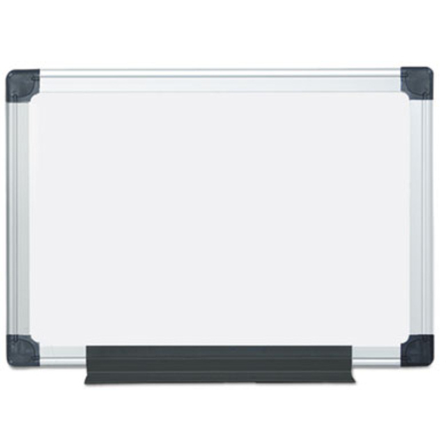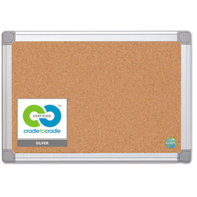 Perfect for personal work areas. Sleek heavy duty black frame with unique corners and a combination of rubber and cork that adds extra durability. Easy to mount vertically or horizontally. Board Type: Bulletin; Board Width: 24\"; Board Height: 18\"; Board Depth: 1/2\".