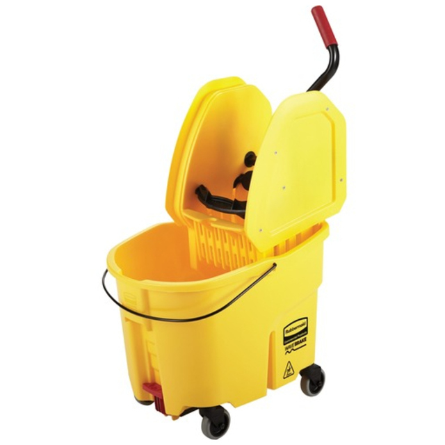 With features that surpass traditional mop buckets, the new generation of WaveBrake helps to clean floors with less effort to get the job done safer, without sacrificing quality and durability. The side-press and down-press wringers are designed to last 5-years or 200,000 cycles. Molded-in WaveBrake baffles disrupt wave formation, reducing splash up to 80% versus leading competitors. Patented WaveBrake baffles result in less splashing while mopping and maneuvering. Down-Press—Foot-operated drain reduces the strain of bending over while emptying. Capacity Range (Volume) [Max]: 44 qt; Material(s): Plastic; Color(s): Yellow; Wringer: Down-Press Wringer.