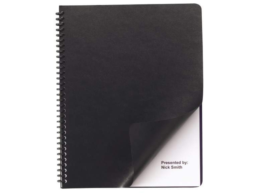 May be used as a back cover with a translucent front cover for a classy presentation. Moisture- and tear-resistant polypropylene keeps documents looking good. Square Corners. Back Cover Color(s): Navy; Front Cover Color(s): Navy; Size: 11 x 8 1/2; Material(s): Polypropylene.