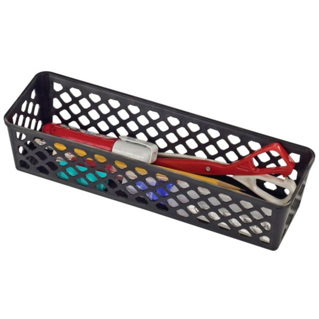 Store notes and an assortment of writing utensils on this slim tray. A versatile, stackable design allows for scalable expansion of your storage system to keep up with a demanding office day. The tray is constructed of durable plastic with a sleek finish for modern offices. Desktop Supplies Organizer Type: Multipurpose; Number of Compartments: 1; Overall Width: 6.85\"; Overall Depth: 9.88\".
