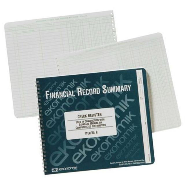 Undated record book offers a simple way to keep accurate records of cash received and paid out. Design includes a payroll section for up to six employees, calendar of important dates, detachable summary sheet, completed specimen page and space for 35 deductions. Wirebound record book with vinyl cover is undated and good for a full year. Nonrefillable book contains 128 pages.