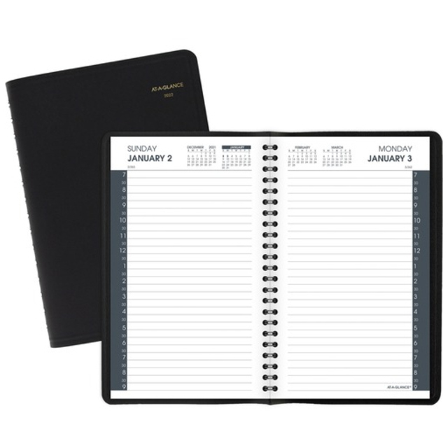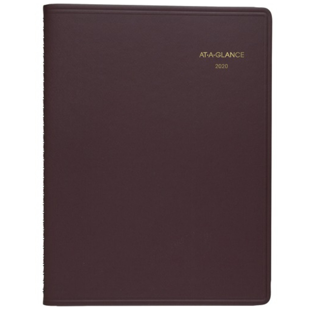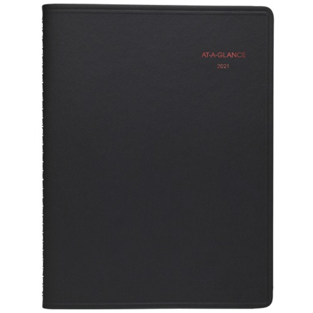 To keep your schedule organized in style, this monthly planner features a beautiful, soft-touch, leather-look cover with twin-wire binding and an elastic closure with piping detail. Planning pages range 17 months from August to December. Two-page-per-month spreads include ruled daily blocks, count of days/days remaining, Sunday-through-Saturday scheduling, holidays, moon phases and past, current and four future months reference. Planner includes heavy-duty cream-colored paper, a ruler/page marker, 40 repositionable note pages and one colored index with a pocket.