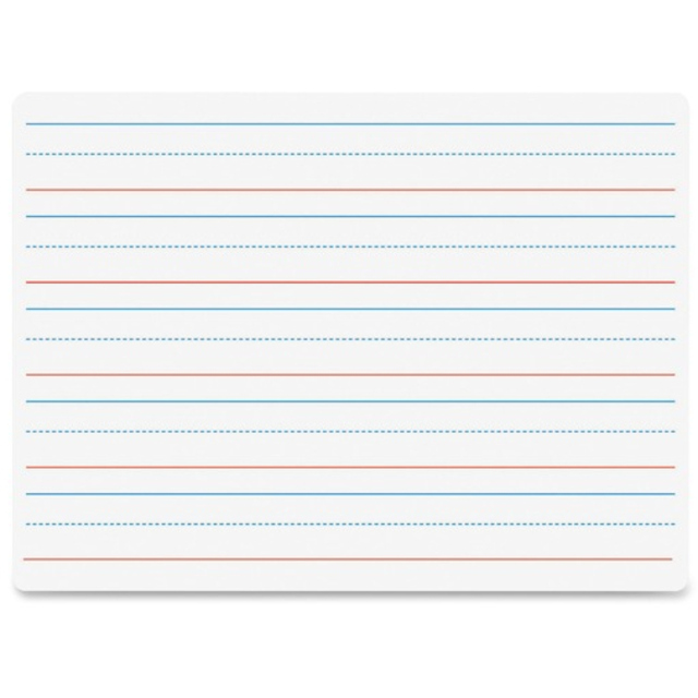 Unframed dry-erase board features a magnetic surface to easily attach small items for display. Write-and-wipe surface will not ghost to prevent the surface from dulling over time. Rounded corners eliminate sharp points for safety and comfort. Included adhesive squares can be used for mounting the board in an optimal location to enhance its visibility throughout the classroom. Durable backing will not warp or chip for long-lasting use. Dry-erase board is perfect for academic practice, doodling and more.