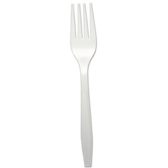 Feed yourself and then feed the earth. Strong, reliable utensils are ideal for breakrooms, cafeterias and dining halls. Contoured handles help you get a comfortable grip. Made of PLA, a corn-based plastic. Utensils Type: Fork; Material(s): PLA; Color(s): White; Grade: Mediumweight.