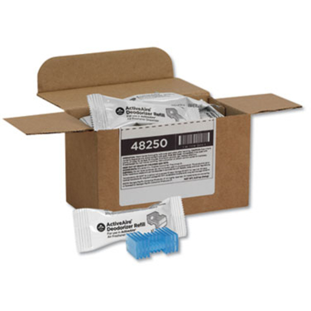 Convenient air freshener is easy to use and maintenance-free as it doesn't depend on batteries, fuel cells or any other artificial means of power. Contains a molecular odor counteractant that effectively fights odors rather than merely masking them. Provides 60 full days of odor control and air enhancement. One refill cartridge covers 6,000 cubic feet. Easy-to-use as you simply twist to activate in a few seconds. Small enough to fit into most dispensers on the market. Scent: Fresh; Physical Form: Solid; Application: Automatic Odor Control; Capacity (Volume): 1.7 oz.