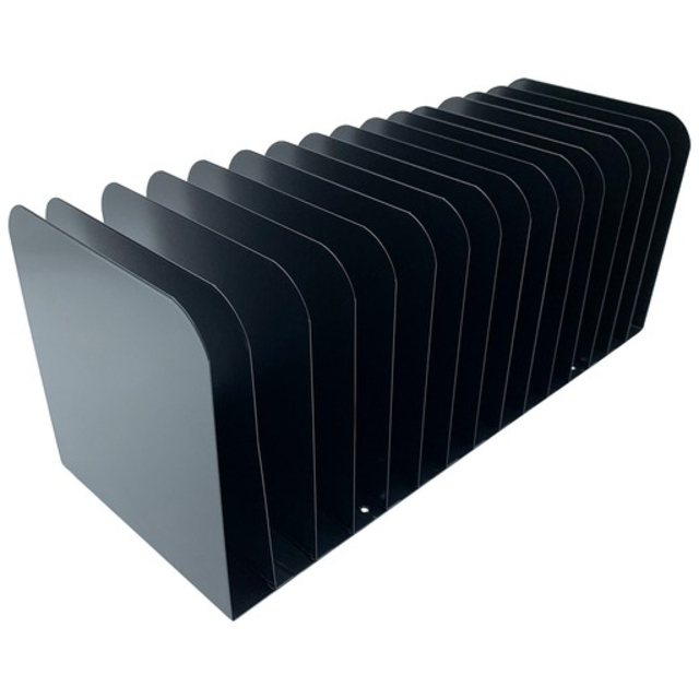 Keep your important paperwork organized with this contemporary, Desk Organizer/Sorter. Place on the surface of your desk for easy access to frequently used, letter-size documents, materials and notes. Each vertical slot offers a deep gap to store paperwork such as folders, notebooks and mail. Organizer is made of long-lasting, durable steel. Use alone or mixed and matched with other coordinating Huron accessories.