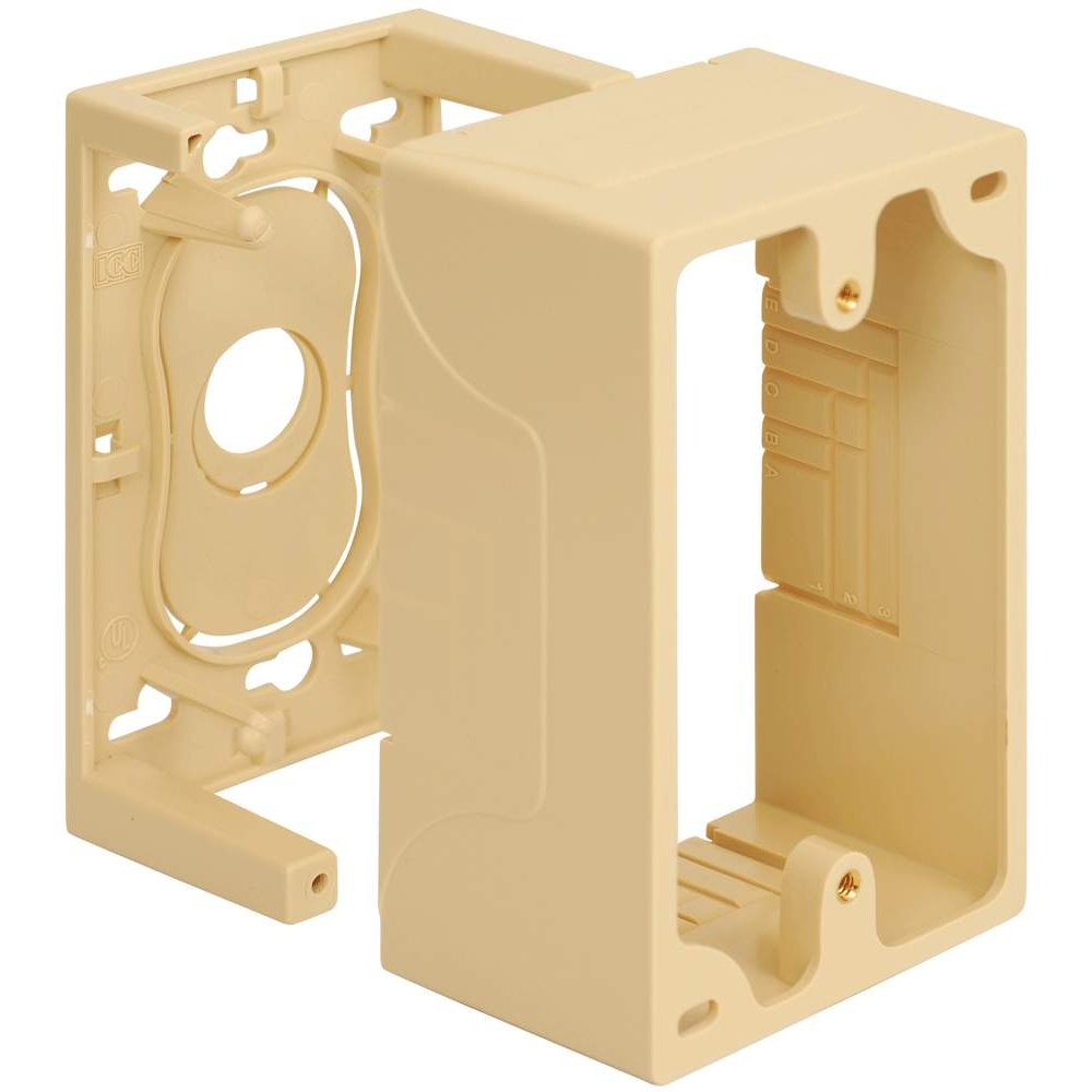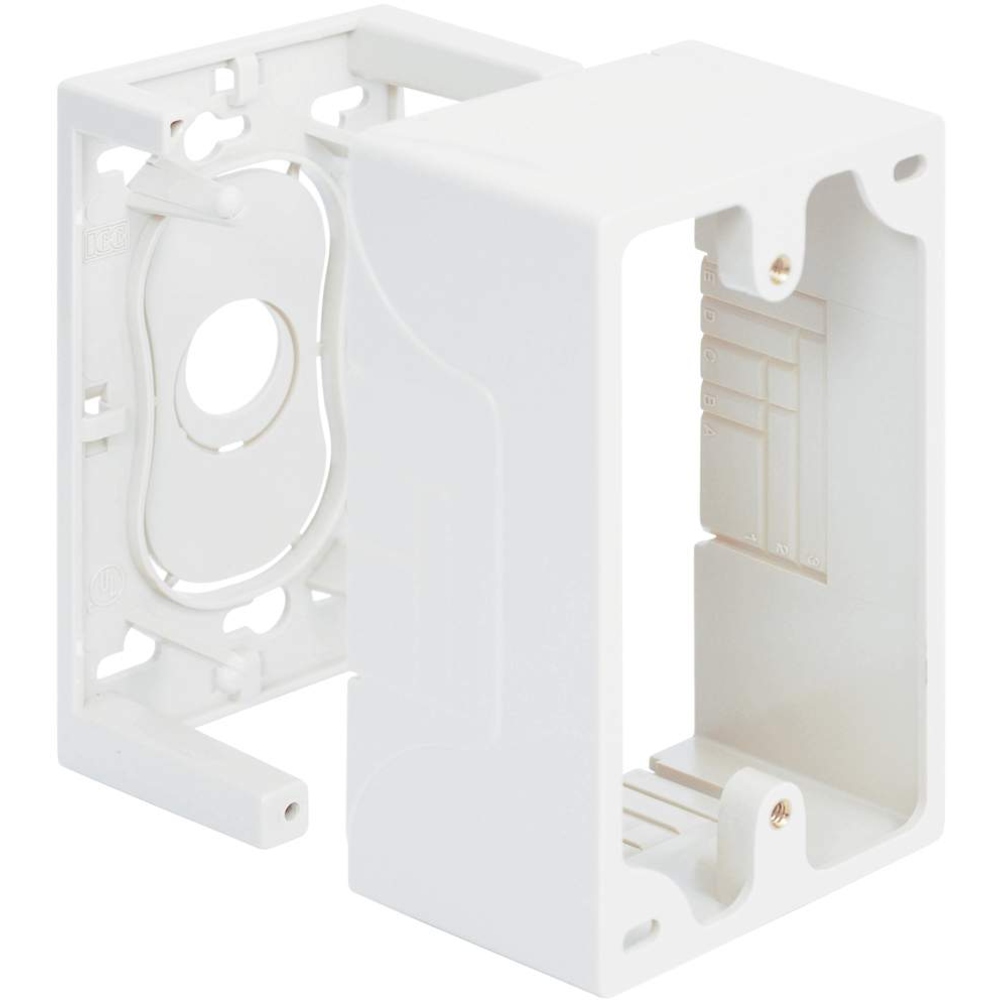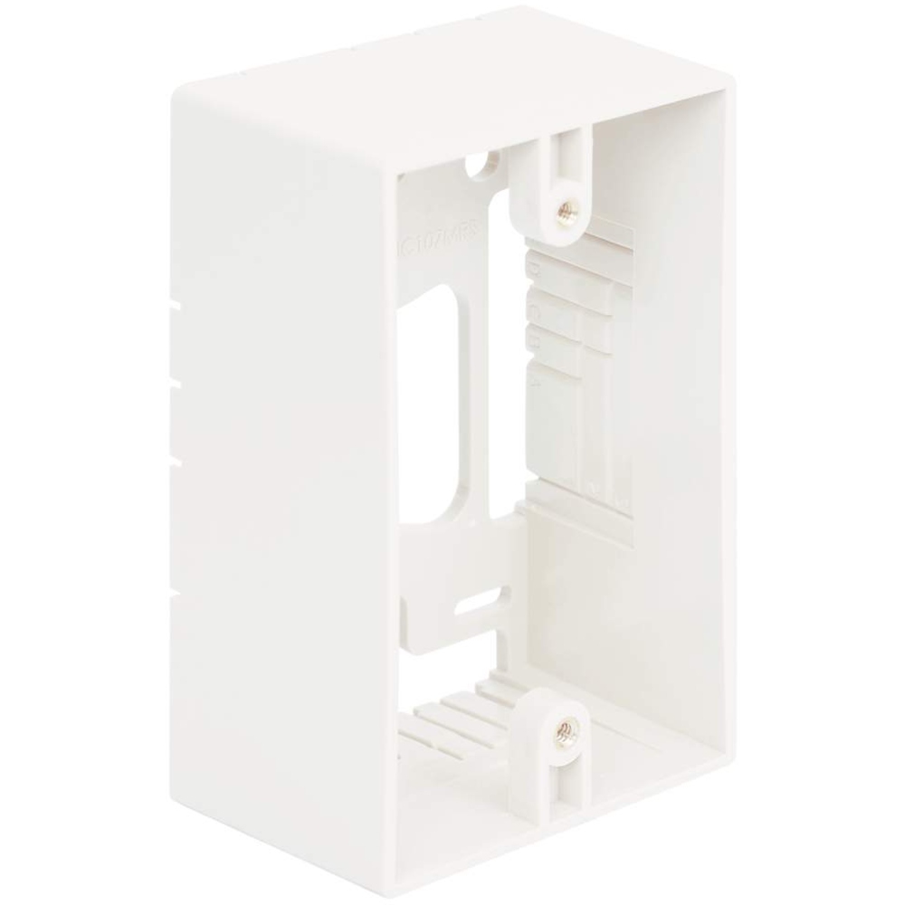 - Provides a clean modular surface mount outlet station for voice connectivity applications - Multiple mounting options including adhesive backing, magnet, and screws - Easy system administration with use of enclosed icons - Rugged and durable construction - Raceway knockouts integrate with raceway systems - Used with ICRW11 raceway system - Accommodates a wide variety of easy to snap-in modules, providing configuration flexibility - Accepts all IC107 modules