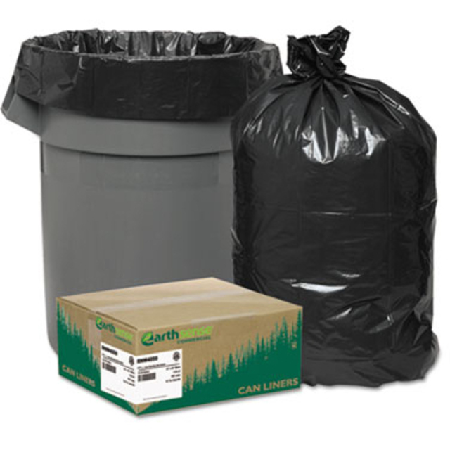 Recycled Large Trash and Yard Bags, 33gal, .9mil, 32.5 x 40, Black, 80/Carton
