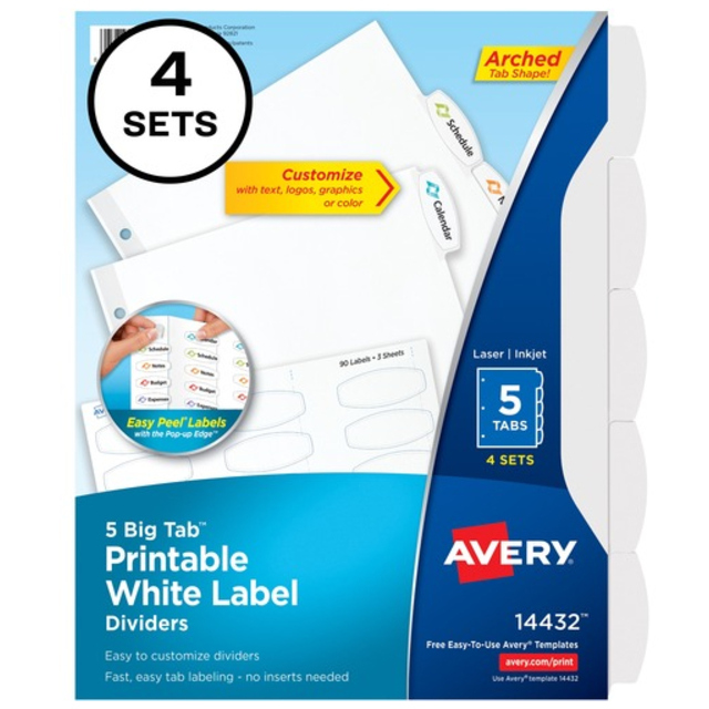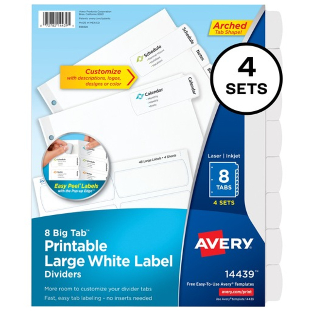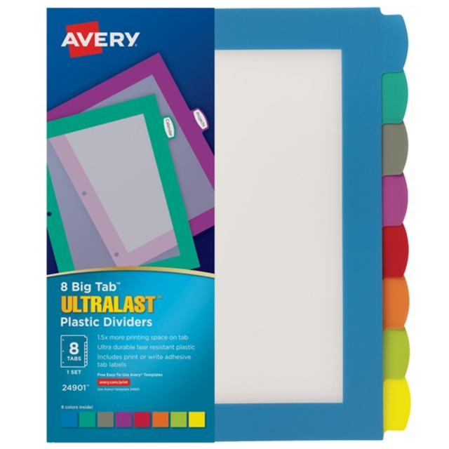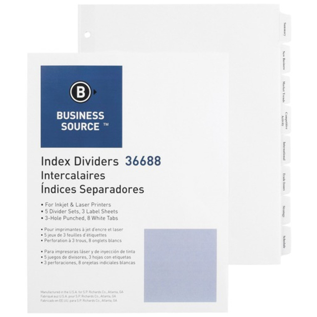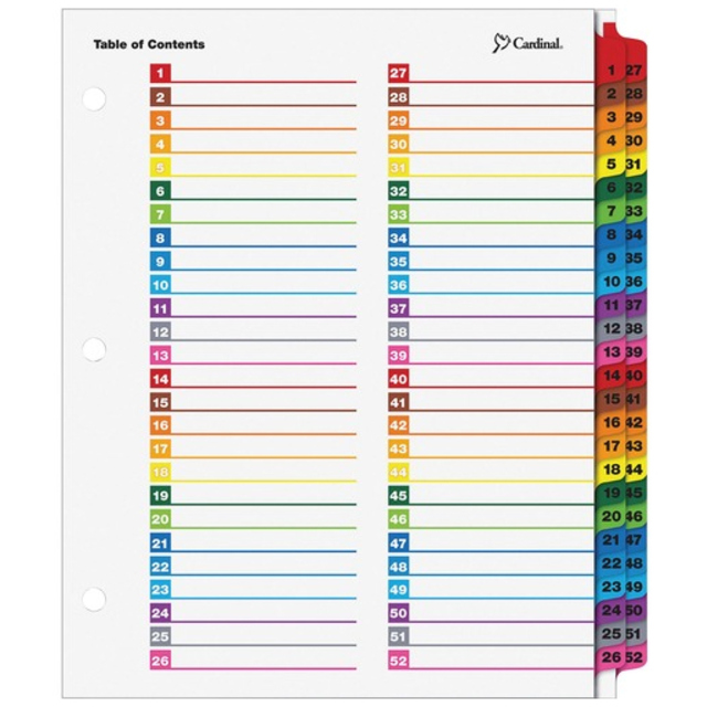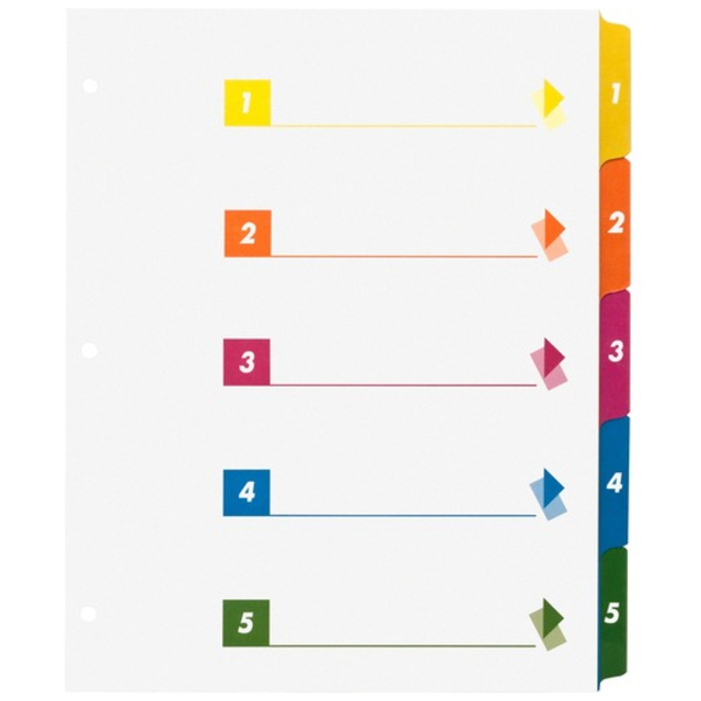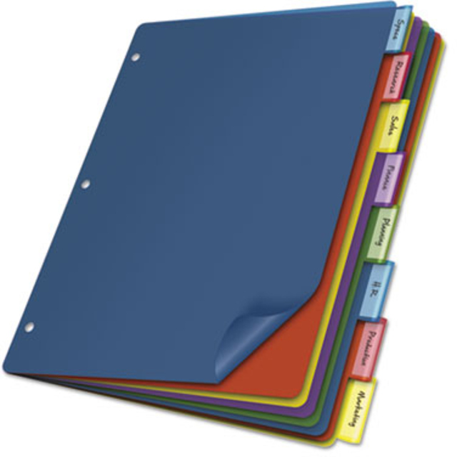 Table of Contents Dividers, Assorted Color 8-Tab, 1-8, Letter, White, 6/PK