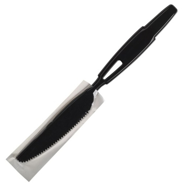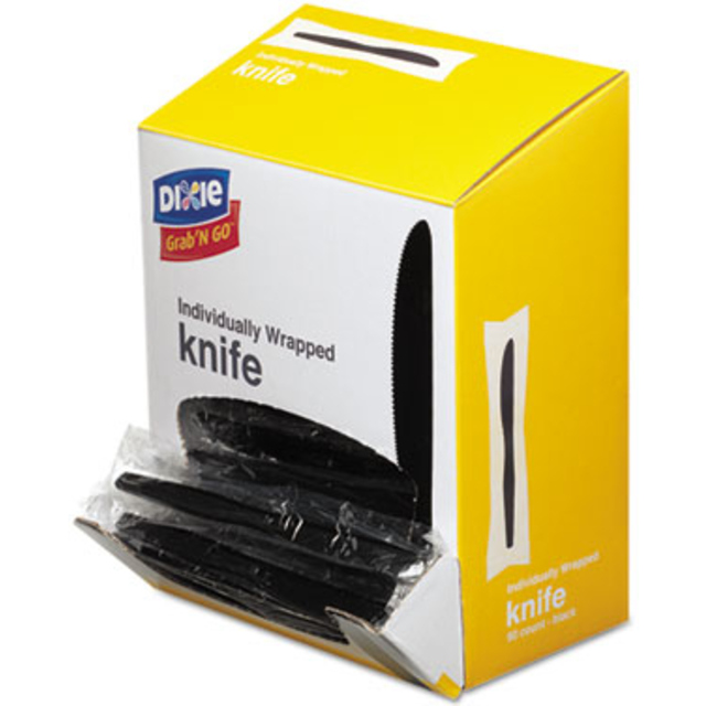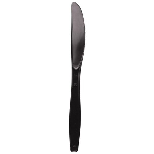 Cutlerease™ Dispensing System delivers on hygiene, no cross contamination due to a catch tray to drop into. Easy loading with tape tabs to hold onto and avoid the need to hold onto the cutlery itself. 3:1 space savings over competition. Convenient, no power required. Stand alone, cartridges slide in and out for easy handling. Waste reduction, take only one piece at a time. Utensils Type: Knife; Material(s): Polystyrene; Color(s): Black; Grade: Mediumweight.