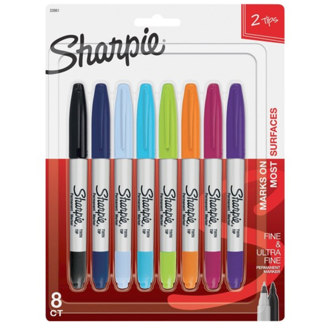 The permanent marker with a split personality, these chisel tip permanent markers have a versatile tip that makes both broad and fine strokes so you can express yourself any way you want. Bold to the max and permanent to the core, Sharpie® Permanent Markers inspire you to transform ordinary surfaces into passionately creative statements. Made to write practically everywhere, these vivid markers eliminate dull and boring. Sharpie® has iconic ink that dries quickly and resists both water and fading. Marker Ink Type: Permanent; Marker Tip Type: Chisel; Marker Tip Size (text): Medium; Marker Color(s): Assorted.