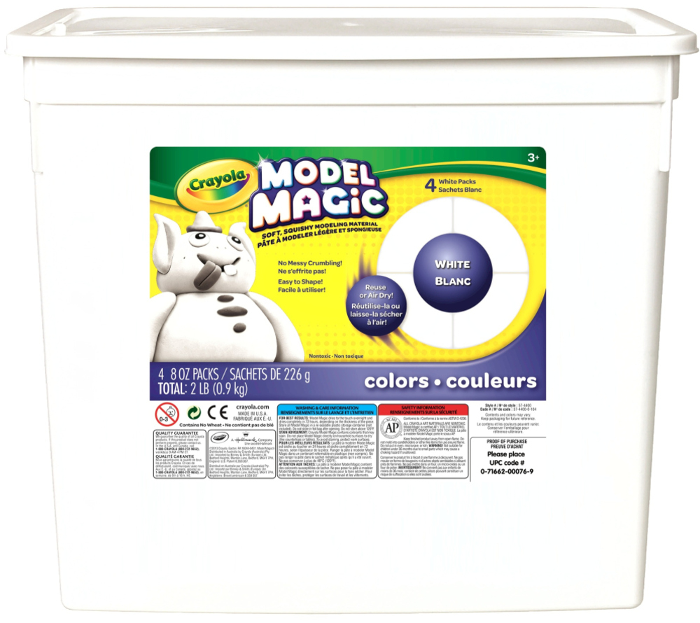 Crayola Model Magic Variety Pack is the perfect clay-like modeling material to pass out at school or home. Soft and squishy, Model Magic is easy for young sculptors to manipulate, making it an excellent alternative to modeling clay. Use again and again if kept in a resealable plastic bag, or children can make their creations permanent by letting them air dry overnight. Each of the 30 individually wrapped packs of Model Magic comes in 1 oz. sealed pouches. Safe and nontoxic, this giant set is ideal for children ages 3 and up.