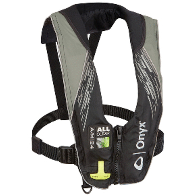 Always read your Owner's Manual for the proper way to initially arm your life jacket with the CO2 cartridge, and how to re-arm it after it has been inflated. Use Onyx Rearming Kit #1352 for this product. U.S. Coast Guard approved Inflatable Life Jacket Personal Flotation Device (PFD).