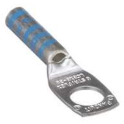 One-hole, long barrel lug, #8 AWG wire, 1/4 stud hole.