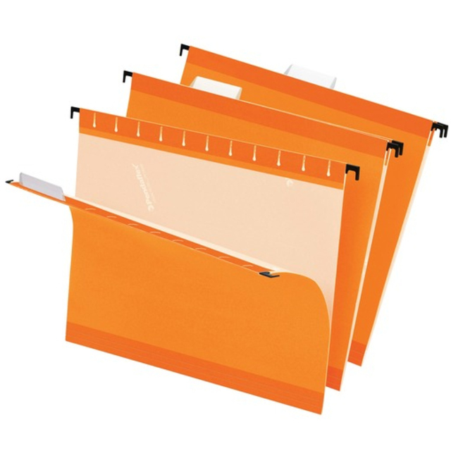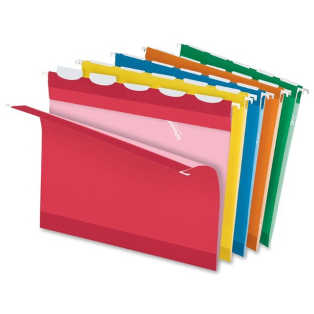 Ready-Tab Reinforced Hanging File Folders feature lift-tab technology that makes it easier than ever to tab hanging folders so your filing system is more efficient. Easily change tab position with tabs that are built into the folder. Tabs easily lift up and down. Write directly on tab or use labels. Printer-ready sheet of labels is included, and labels have permanent self-adhesive. Folders feature polylaminate strips on top and bottom edges for superior durability.