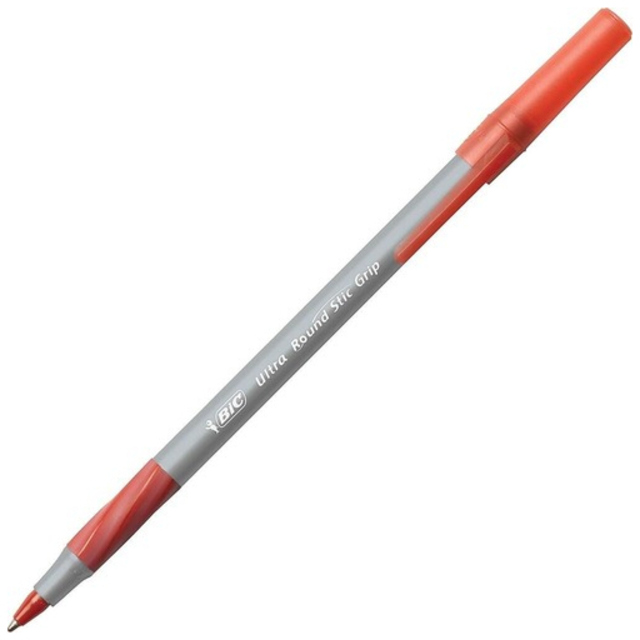 Features water-resistant properties that prevent skipping, smearing, and fading. Clear, see-through barrel allows you to monitor ink supply. Point Size: 0.7 mm; Point Type: Medium; Ink Color(s): Red; Pen Type: Roller Ball.