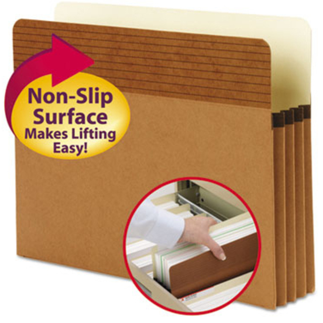 Economical choice for filing depositions, lengthy government reports or other paper-intensive records. Gussets reinforced with tear resistant material at the top adds strength to the point of greatest wear.