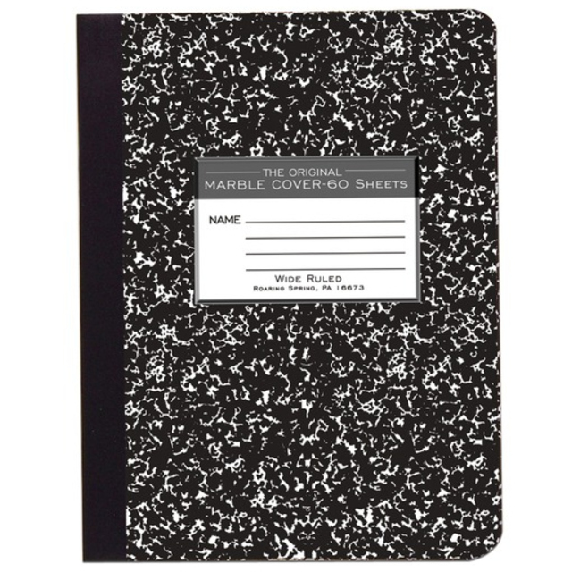 Composition book contains 80 sheets of 15 lb., 5 x 5 quad-ruled paper. Ideal for school lab reports and note-taking. Design features a center-sewn hard cover.