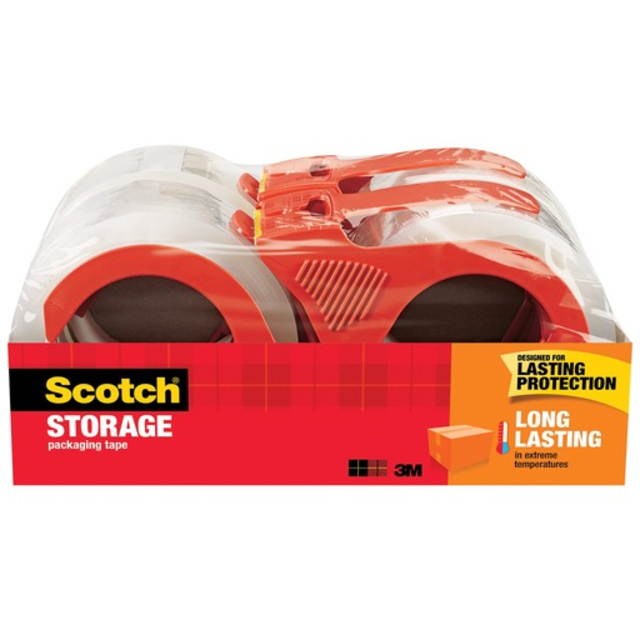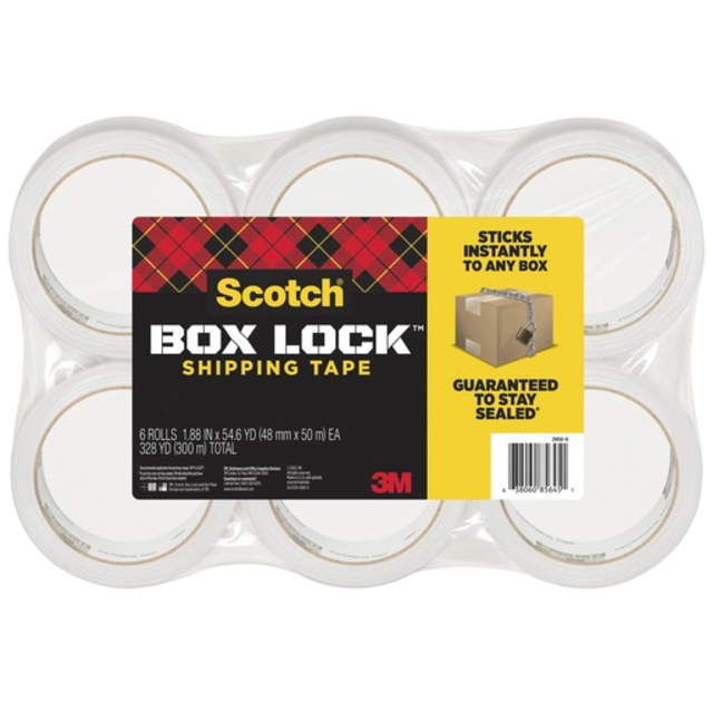 Scotch Box Lock Packaging Tape sticks instantly to any box. Extreme grip ensures boxes stay securely sealed, even during rough handling. Advanced adhesive creates a secure seal over box edges better than other leading premium packaging tapes and sticks better on cardboard too. It is designed to be thicker than many competitive tapes, which reduces splitting and tearing and makes it easier to find the start of the roll. This tape can be used on any type of box, including harder-to-stick to 100 percent recycled boxes. Tape roll comes with a dispenser.