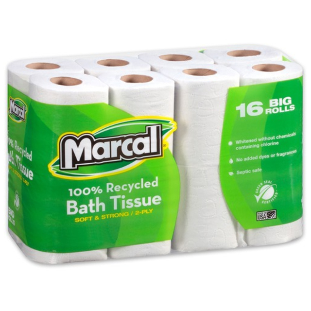 Choose recycled bathroom tissue and close the loop. When you buy recycled, your choice has a meaningful and lasting impact on the environment. You're "closing the loop" by taking an active part in the continued cycle of fiber use. You are saving trees, energy and water and helping to conserve precious natural resources. This two-ply bathroom tissue is made with a high percentage of post-consumer content - the paper we all recycle every day at home, school and work. Tissue is whitened without chemicals containing chlorine, and has no added dyes or fragrances. Each roll contains 240 sheets.