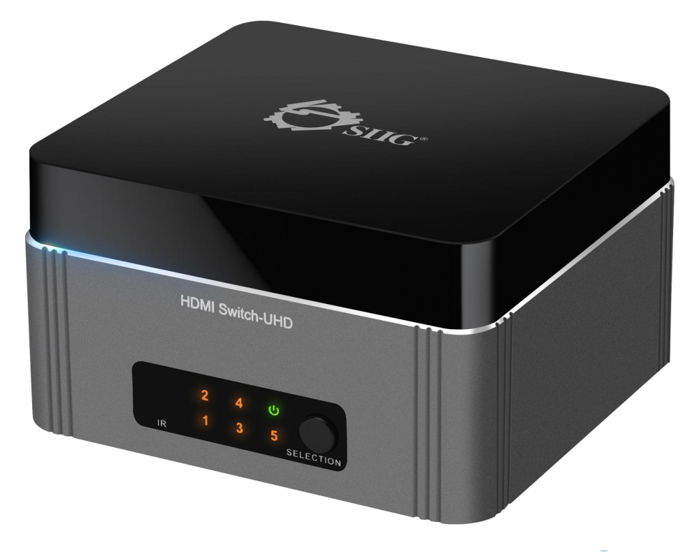 Share one UHD 4K HDMI Display between five UHD 4K HDMI sources with IR remote control and HDR - Connect up to 5 UHD 4K HDMI sources to one UHD 4K HDMI display - Supports most HDMI host devices such as PCs, laptops, TV boxes, gaming consoles, Blu-ray and DVD players and HDMI display devices such as projectors, HDR TVs and Monitors - This premium quality 4K HDMI switch gives you stable, distortion free audio and video supporting Ultra High Definition video up to 4Kx2K@60Hz YUV420 and 4Kx2K@30Hz YUV444 - Compatible with Dolby TrueHD and DTS-HD master audio - Easily switch among the connected HDMI source devices using either the included remote control or front-panel push button - Sturdy metal housing provides durability and reduces EMI/RFI interference