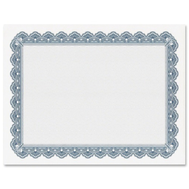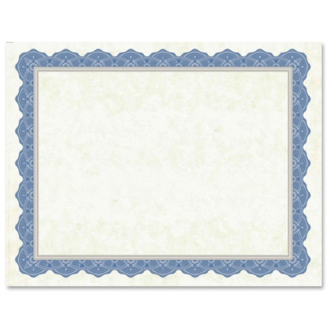 Create professional-looking awards and certificates with Foil-Enhanced Parchment Certificates. 24 lb. ivory parchment paper is imprinted with blue and silver foil-enhanced borders. Paper is acid-free. Certificates are compatible with laser printers and inkjet printers.