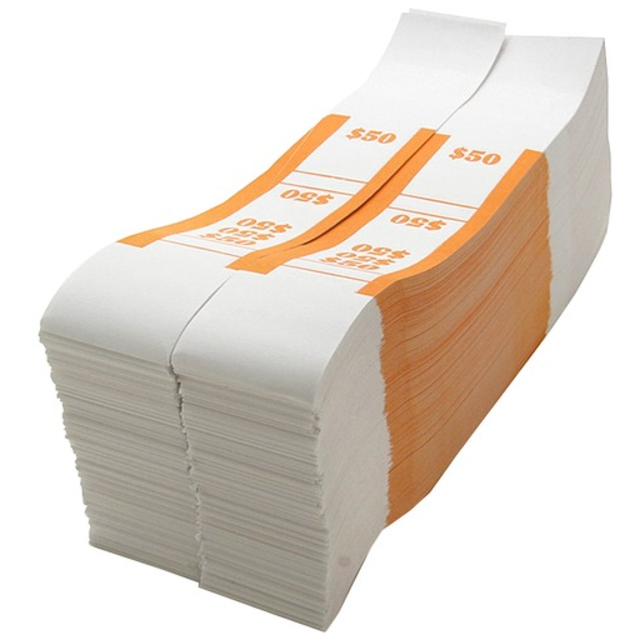 Bill straps come color-coded to conform to ABA standards. Quick-stick type ensures secure adhesion.