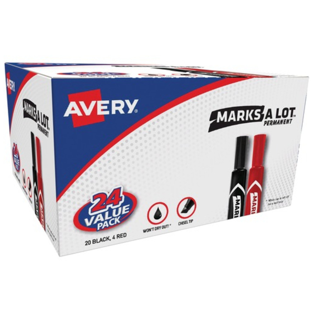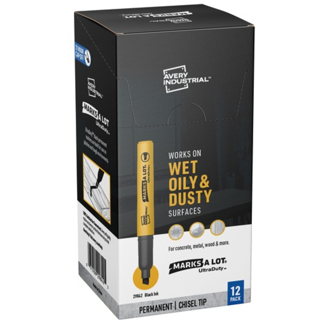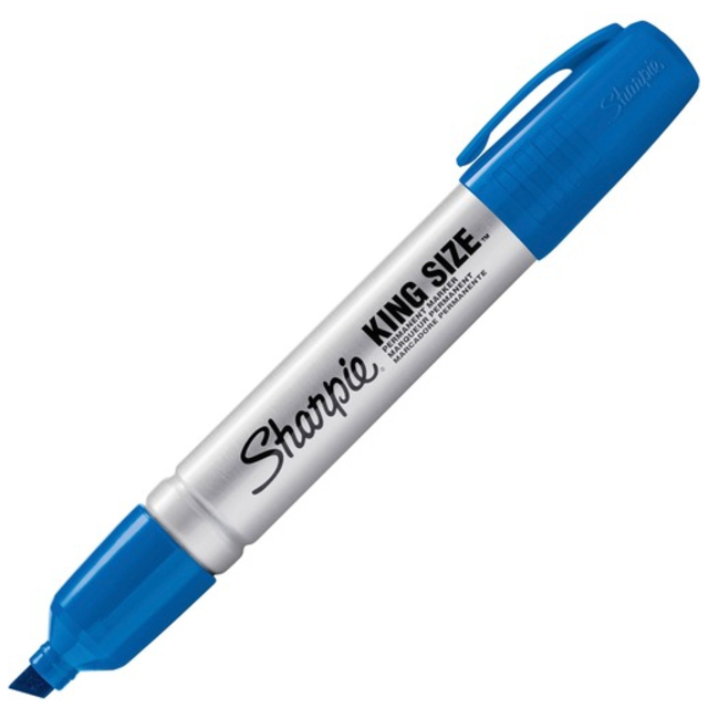 Permanent blue marker with two durable tips – wide chisel tip and fine bullet tip. Works on a wide range of materials, including paper, metal, plastic, glass, vinyl, porcelain, leather, and wood. Two tips provide options for making thin or thick marks of smear-proof oil-based permanent ink. Durable tips made of polyester fiber (chisel tip) and acrylic fiber (fine tip) stay fresh and firm even after heavy use. Great for marking on shipping labels, boxes, pallets, signs, and more. Anti-roll chisel tip cap prevents marker from rolling off work surface. Water resistant blue ink. 6mm chisel tip; 2mm fine tip. Also available in black and red ink.