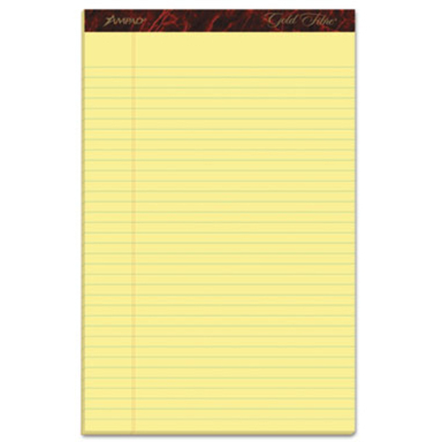 Docket Gold Writing Pads contain heavyweight, 50 lb. bond paper that restricts bleed-through and provides a smooth writing surface. Letr-Trim perforation allows clean and easy sheet removal. Junior narrow-ruled sheets are double-stitched at the top for added strength and feature burgundy marble binding. Sturdy, 60 point rigid backboard offers writing support. Each pad includes 50 stitched sheets of 50 lb. paper with 9/32" line spacings and a 1" left margin.