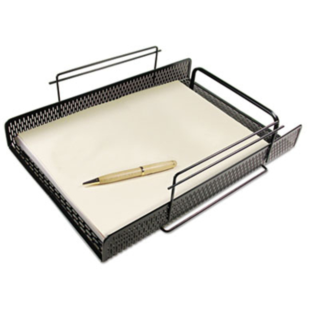 Tray keeps papers organized. Stackable to maximize desktop space. Interlocking feet ensure secure stacking of up to five trays. Desktop File Folder Sorter Type: Horizontal & Stacking; Number of Compartments: 1; Material(s): Mesh; Width: 17".