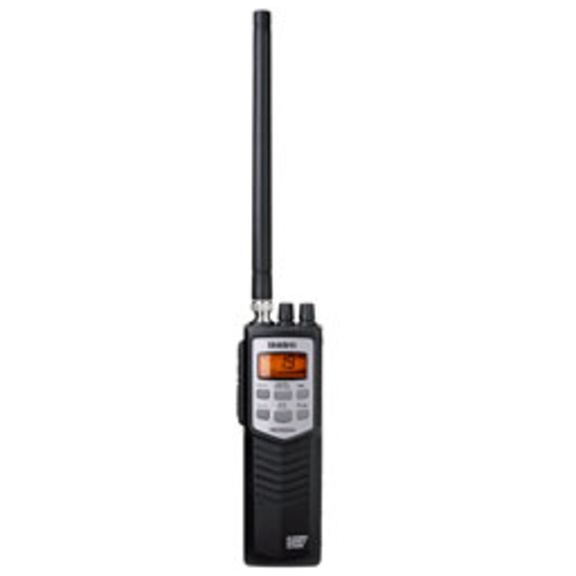 Marine users can use the UM385's DSC Digital Select Calling capability. S.A.M.E. technology provides NOAA weather and emergency alerts, and the device is water-resistant against damage from splashes and rain.