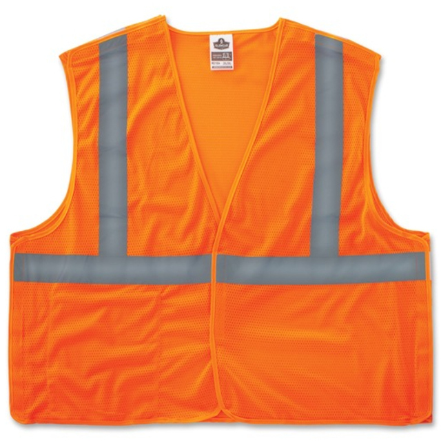 Reflective Safety Hi-Viz vests are designed to enhance the visibility and safety of workers on the job. Vests are lightweight and economical; designed for a comfortable fit. Each ANSI compliant vest is a hi-viz polyester knit with reflective tape on the back and front ensures enhanced visibility. It also includes an inside right pocket that is convenient for holding small items on the job. Handy hook-and-loop closure. Apparel Type: Vest; Material(s): Polyester; Color(s): Orange/Silver; Size Group: Standard.