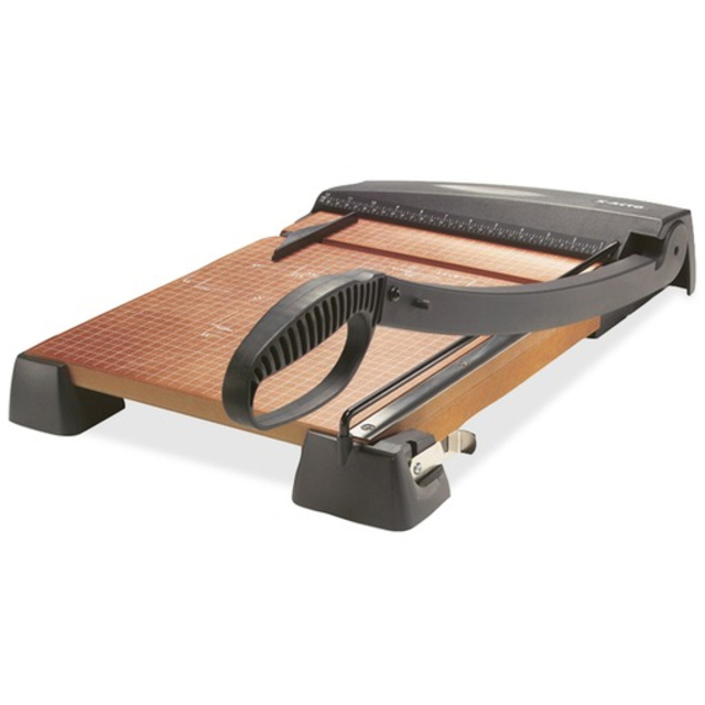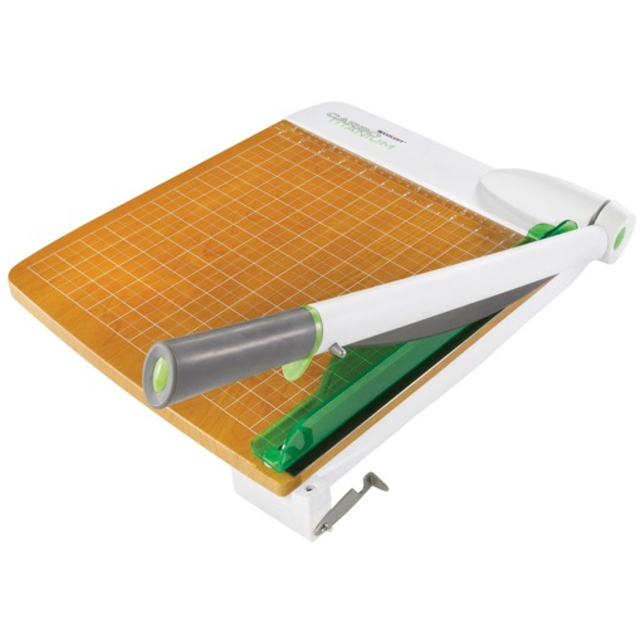 Rotary trimmer features a CarboTitanium blade that's eight times harder than steel to keep its sharp edge for longer. EZ-change, push-button blade release makes changing out dull blades safe and simple. Secure locks at each end of the cutting rail tightly hold onto your paper to ensure straight cuts. Measuring grid in both inch and metric measurements help you keep a straight edge on all your projects for consistent cuts. Trimmer is perfect for cutting up to 10 sheets of 20 lb. paper, cardstock, construction paper, photographs and more.