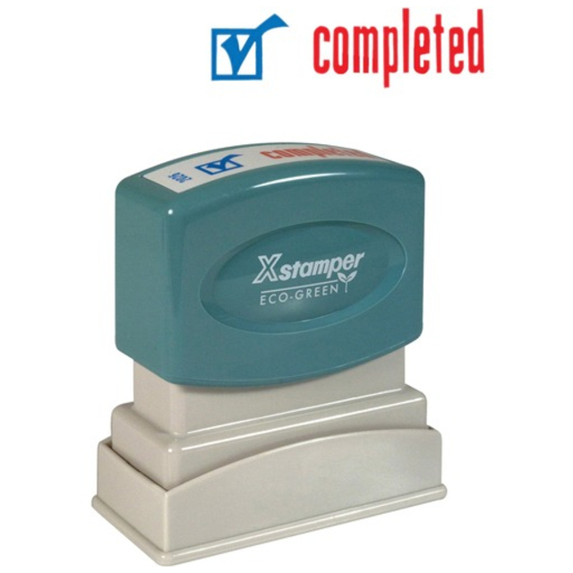 Blue ink "OK" Stamp is pre-inked and re-inkable. Retractable frame keeps stamp surface away from desktop until ready to use. Plastic cap makes it safe to carry in purse or pocket. Impression size is 5/8" diameter.